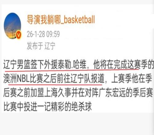 籃球媒體人:遼寧隊(duì)已經(jīng)簽約第六外援