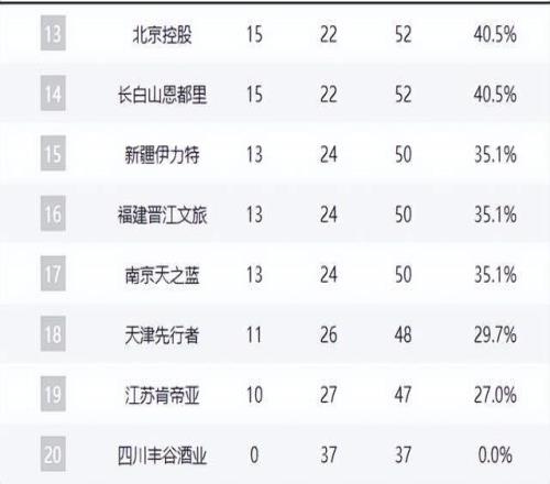 遼寧隊20勝17負,排名第九,基本無緣前八。寧波隊18勝18負,跌至第十,季后賽前景黯淡。山西隊19勝18負位列第十一。