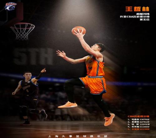 王哲林CBA生涯總得分達到至少10148分,超越劉煒10147分,升至CBA歷史得分榜第五,也是高居CBA現(xiàn)役第一。