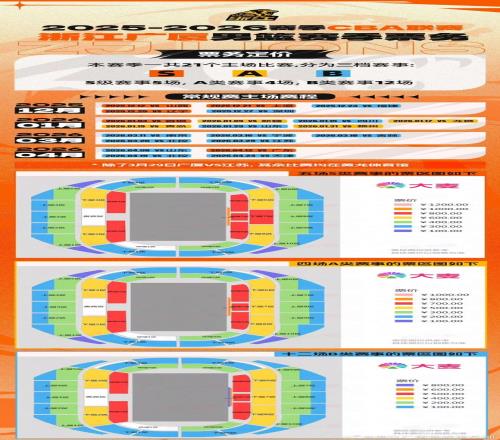 票價檔位:這兩場賽事均為B類賽事,設(shè)置多檔票價,滿足不同球迷觀賽需求,具體票價及座位分區(qū)可查看下方海報或前往購票平臺查看詳情,無論身處哪個區(qū)域,都能沉浸式感受賽場熱血氛圍。