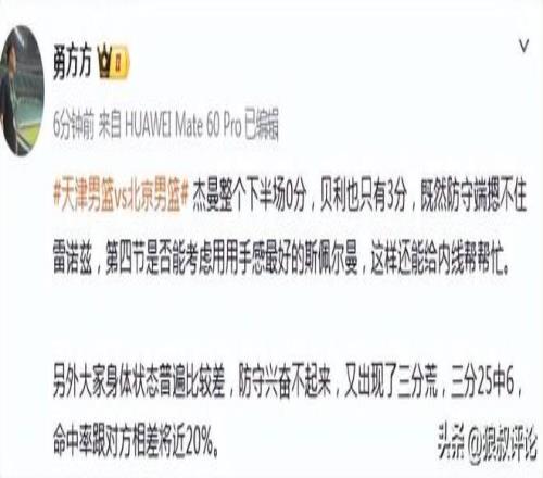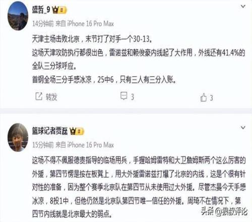 天津主場贏了15分,第四節(jié)轟出一波30-13,送北京最近十場比賽第六敗,兩邊對比賽的專注度和調(diào)度調(diào)整不是一個級別。