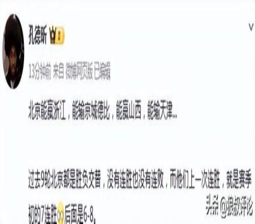 過去9輪北京都是勝負交替,沒有連勝也沒有連敗,而他們上一次連勝,就是賽季初的7連勝[并不簡單]后面是6-8。