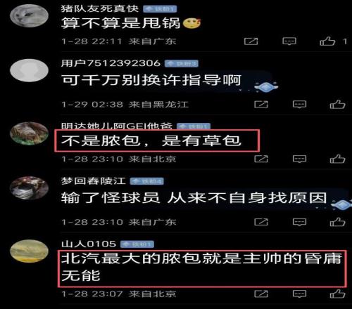 球迷的評論真有意思,膿包不是隊(duì)員,而是主教練。許指導(dǎo)什么時(shí)候功成名就榮升總教練?我們拭目以待。
