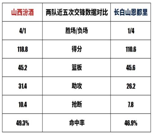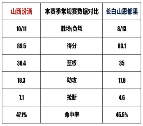 山西汾酒與長白山恩都里歷史上一共交手42次,山西汾酒22勝20負(fù)。上賽季兩隊交手2次,山西汾酒1勝1負(fù)。