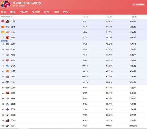 CBA最新排名,反超廣東,上海升第2,北京掉到第6,6隊(duì)哄奪第12名