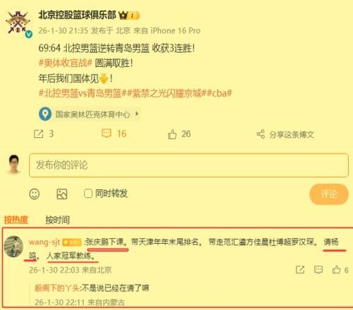 張慶鵬的北控隊(duì)已經(jīng)取得3連勝,但球迷仍然希望換楊鳴執(zhí)教,雙方也確實(shí)有接觸!遼籃名宿張慶鵬所執(zhí)教的北控隊(duì),又以6...