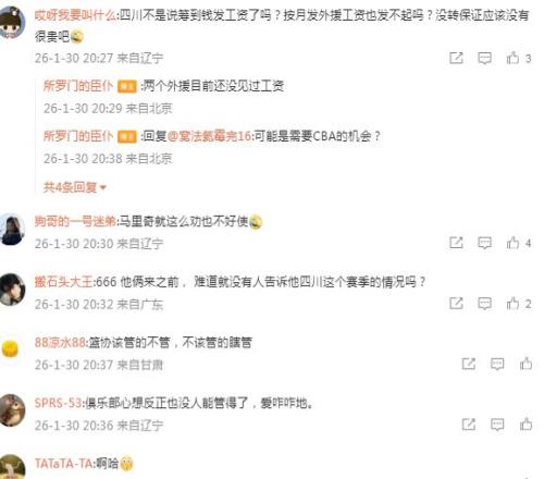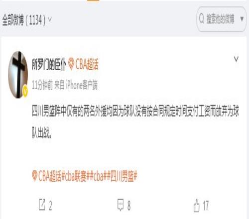 四川男籃在去年夏天,就深陷欠薪丑聞,當時球隊本土球員集體寫聯(lián)名信控訴欠薪,且上賽季的外援也通過社媒表示他們也被欠薪。