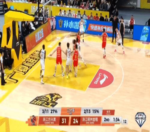 第二節(jié),前半節(jié)5分鐘浙江持續(xù)進(jìn)攻啞火失誤一分不得,廣廈塔克、桑普森持續(xù)反擊得分一波13-0反超7分,節(jié)中浙江劉澤一、約翰遜內(nèi)線艱難拿到6分,但節(jié)末2分鐘浙江再度啞火,廣廈布朗、胡金秋、朱俊龍一波7-0將分差拉大至兩位數(shù),半場(chǎng)戰(zhàn)罷,廣廈35-24浙江。