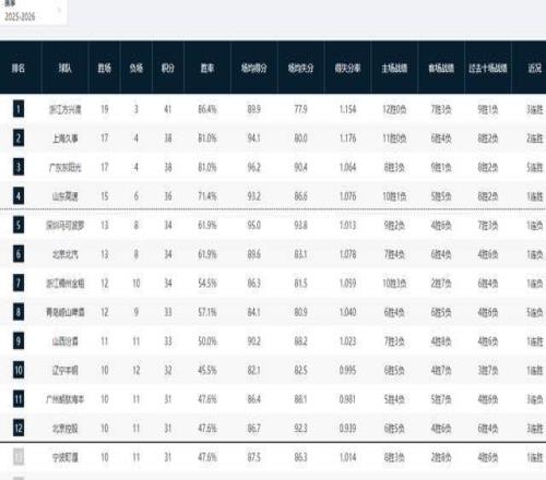 CBA積分榜最新排名出爐!雙廣滬穩(wěn)居前3:北京第6遼籃第10