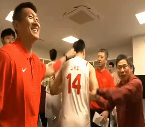 賽后,中國隊在更衣室瘋狂慶祝逆轉(zhuǎn),全隊擊掌,趙睿等隊員非常興奮,主教練郭士強(qiáng)十分開心,不過胡金秋安靜地坐在一旁。