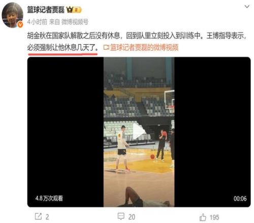 最靠譜的國手!剛打完世預賽就隨隊訓練,球迷:比周琦沉穩(wěn)多了