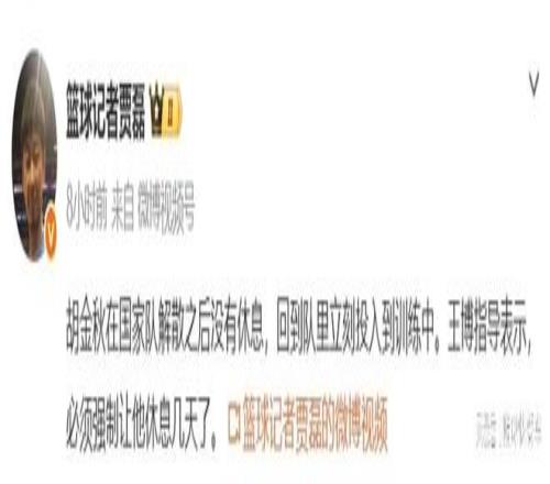而在結(jié)束男籃世預(yù)賽后,胡金秋也跟隨中國隊(duì)回到北京,并且各自解散回家。在離開國家隊(duì)以后,胡金秋并沒有偷懶,也沒有選擇休息,直接就回到了球隊(duì),跟隨球隊(duì)一起訓(xùn)練。而對(duì)于胡金秋這種勞模精神,作為廣廈主教練王博,他已經(jīng)心疼壞了。畢竟,廣廈隊(duì)目前就只有胡金秋這樣一個(gè)頂尖內(nèi)線,一旦他受傷了,對(duì)于廣廈而言,確實(shí)是滅頂之災(zāi)。