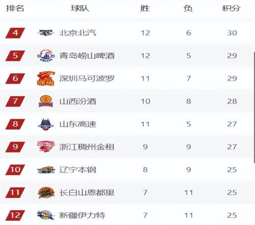 目前前8的排名其實(shí)變化不大,主要是第9-12的排名競(jìng)爭(zhēng)比較激烈,新疆現(xiàn)在是2連勝暫時(shí)來到了第12,反彈勢(shì)頭強(qiáng)勁,近期有望把吉林、遼寧、寧波拉下去。