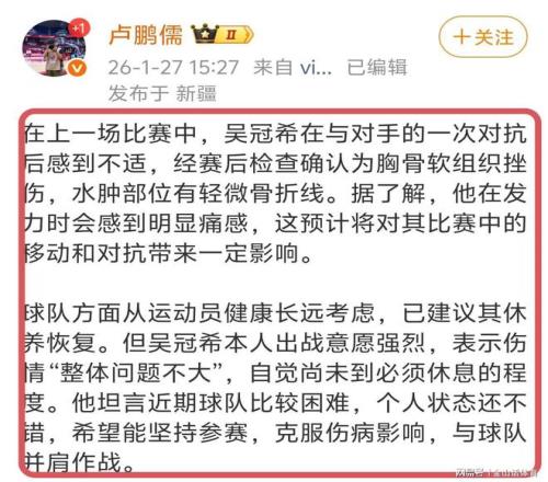 骨裂肋骨同曦隊(duì)新疆隊(duì)吳冠希新疆男籃本土球員