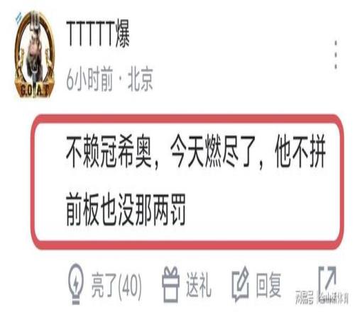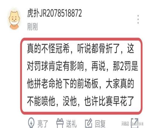 賽后,許多球迷對(duì)吳冠希的表現(xiàn),給予了充分肯定,紛紛表示“不賴冠希,今天燃盡了,他不拼前板也沒(méi)那兩罰?!保弧肮谙W罱鼛讏?chǎng)都非常不錯(cuò)了,值得鼓勵(lì)?!?;“真的不怪冠希,聽(tīng)說(shuō)都骨裂了,這對(duì)罰球肯定有影響,再說(shuō),那2罰是他拼老命搶下的前場(chǎng)板,大家真的不能?chē)娝瑳](méi)他,也許比賽早花了!”……