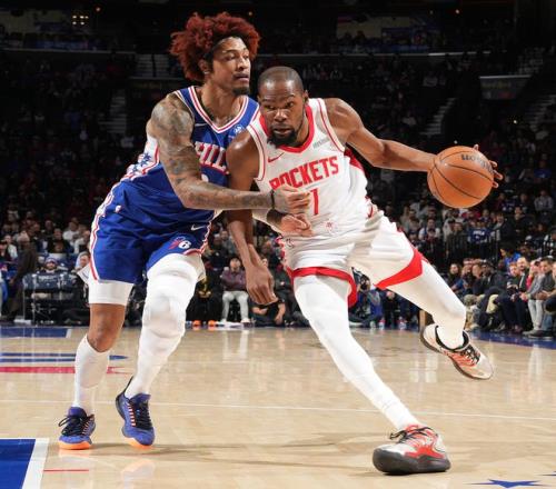 北京時(shí)間1月23日,火箭以122-128不敵費(fèi)城。這場比賽凱文-杜蘭特延續(xù)了上一場的完美手感,烏布雷、喬治、沃特福德輪番上陣都無法限制他,KD再度揮動(dòng)他的死神鐮刀幫助火箭在一度落后9分的情況下一度完成反超,但進(jìn)入加時(shí)賽KD的體能下滑連續(xù)的外線三分不中還出現(xiàn)了一個(gè)致命的進(jìn)攻犯規(guī)。
