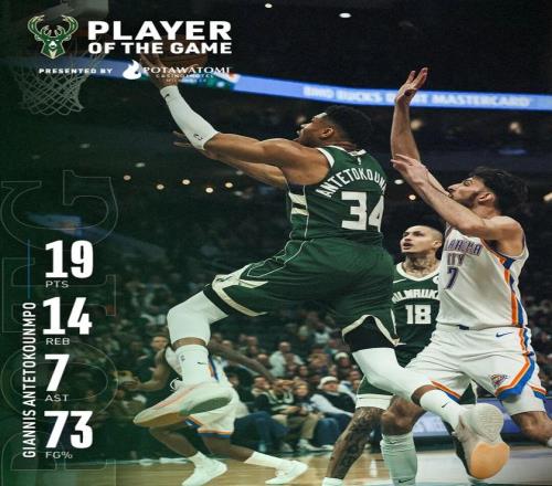 雷霆一方,亞歷山大依舊強(qiáng)勢(shì),全場(chǎng)19投16中,轟下40分7籃板11助攻;而另一邊的字母哥,數(shù)據(jù)看著并不差,但完全不像全明星首發(fā)級(jí)別的球員,全場(chǎng)11投8中,得到19分14籃板7助攻。