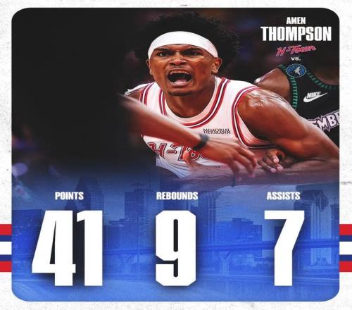 首輪無緣主場優(yōu)勢挺可惜,但這場比賽,火箭球星阿門湯普森打出了非常炸裂的表現(xiàn):全場出戰(zhàn)42分鐘,投籃22中17,罰球7中7,拿下41分9籃板7助攻2搶斷。