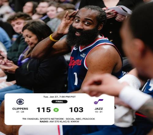 快船過去的19場比賽贏下其中的16場,目前是一波三連勝,哈登16+10引多人上雙大勝爵士,此役后快船與開拓者沒有差距,只要開拓者再輸一場,快船就能升西部第九。