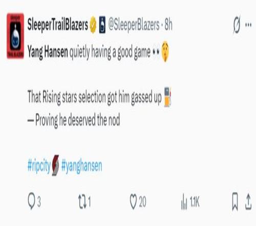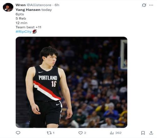 開拓者球迷:楊瀚森真的表現(xiàn)很好,他終于看起來像一個(gè)NBA球員了,繼續(xù)保持下去吧。