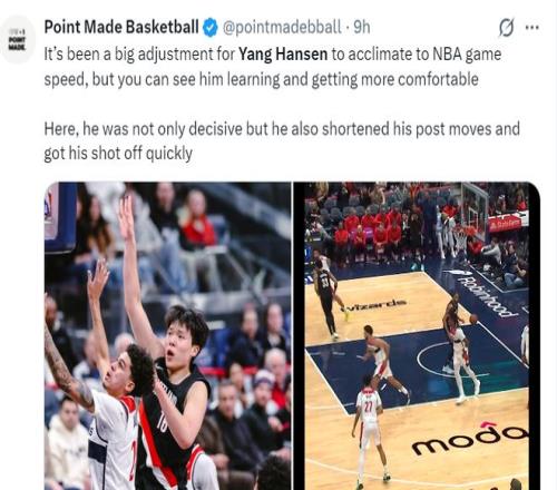 美媒:對(duì)于楊瀚森來說適應(yīng)NBA的節(jié)奏是一大挑戰(zhàn),但你能看到他似乎已經(jīng)逐漸適應(yīng)了NBA的速率/節(jié)奏。他在防守端不斷提速,而且在出手前縮短了跑動(dòng)距離,從而很迅速的完成出手。
