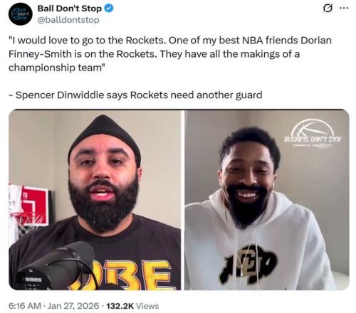 名記Marc Stein也曝出火箭隊暫時無意丁威迪,他們最早也要等到交易截止日(2月6日)過后才會考慮在后場位置引進自由球員。