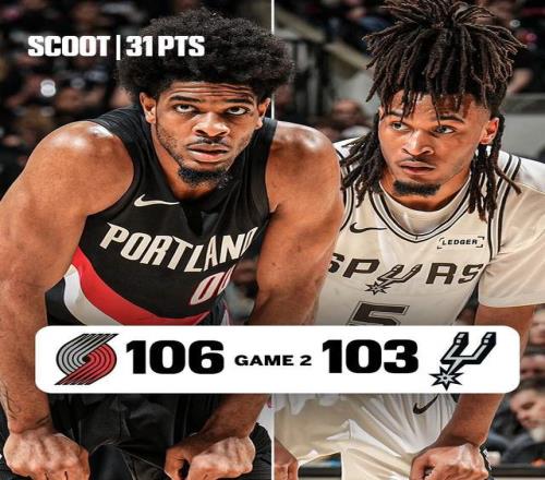 而在比賽最后階段,開拓者后衛(wèi)線突然暴走,末節(jié)全隊打出27-23,以微弱單節(jié)優(yōu)勢幫助開拓者3分險勝馬刺,以106-103拿下系列賽第二場,大比分來到1-1平局。