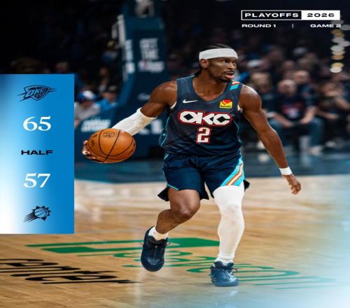 雷霆隊(duì)的威廉姆斯上半場得到19分,亞歷山大得到17分;太陽隊(duì)的格林得到14分,布克得到11分和5個(gè)籃板,奧尼爾也有11分和5個(gè)籃板。