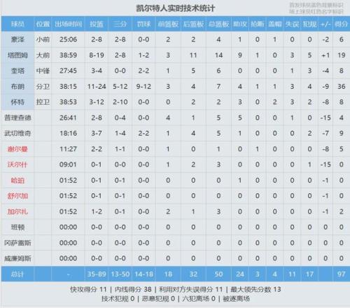 再看看凱爾特人雙探花的表現(xiàn):塔圖姆出戰(zhàn)39分鐘,投籃19中8,三分8中2,罰球2中1,得到19分14籃板9助攻1搶斷3失誤。布朗出戰(zhàn)38分鐘,投籃24中11,三分12中5,罰球12中9,得到36分7籃板4助攻1搶斷1蓋帽3失誤。