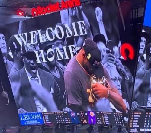 歡迎回家,騎士主場播放致敬視頻,詹姆斯場邊落淚