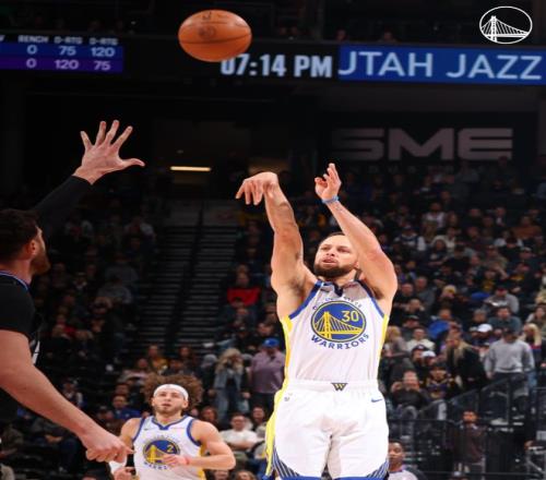 庫(kù)里27分總得分超皮爾斯!勇士8人上雙23記三分大勝爵士