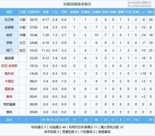 球員數(shù)據(jù):火箭:阿門25分7板4助3斷、杜蘭特24分2板6助、申京18分10板7助2斷、伊森10分6板3斷、謝潑德9分5板2帽...