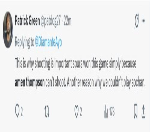 刺蜜:這就是為什么投籃能力如此重要,因?yàn)榘㈤T(mén)無(wú)法投籃所以馬刺贏得了比賽,此外我們不讓不會(huì)投籃的索漢登場(chǎng)也是贏球原因之一。