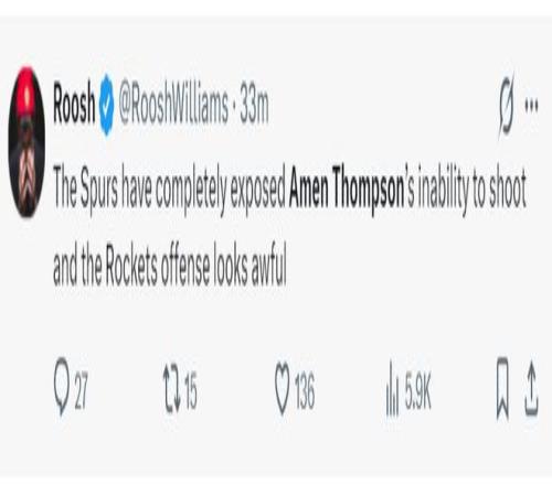 賽后休媒紛紛炮轟阿門(mén):馬刺隊(duì)徹底暴露了阿門(mén)的投籃能力不足的問(wèn)題,當(dāng)然火箭隊(duì)的進(jìn)攻表現(xiàn)也相當(dāng)糟糕。