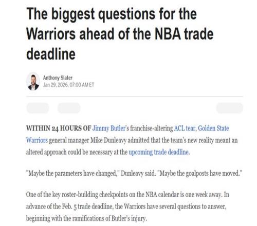 與以往十分吝嗇首輪簽不同,勇士隊認為這一次是完全不同級別的交易,所以愿意為此付出巨大的代價,同時勇士管理層承認此前的“雙線策略”過去幾年耽誤了庫里,所以努力想要為其引進合適的搭檔。