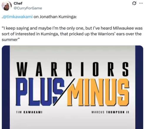除此之外,灣區(qū)名記Tim Kawakami在《PlusMinus》曝出雄鹿隊一直對都庫明加挺感興趣。
