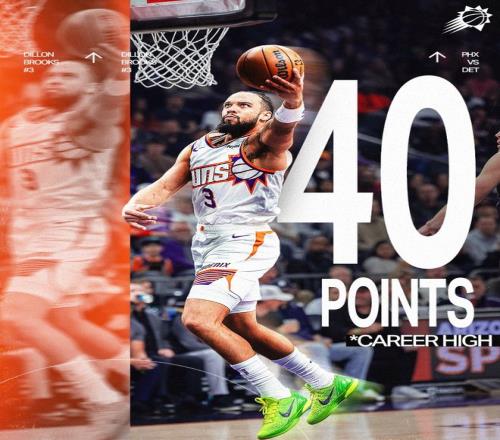 太陽傷停了杰倫格林、德文-布克兩個(gè)核心后衛(wèi),沒想到他們可以在主場(chǎng)114-96大勝東部第一的活塞,狄龍成為太陽第一核心22中13+三分7中4拿到40分8籃板4助攻,太陽拿到二連勝,他們穩(wěn)穩(wěn)壓制勇士,勇士依舊是西部第八。