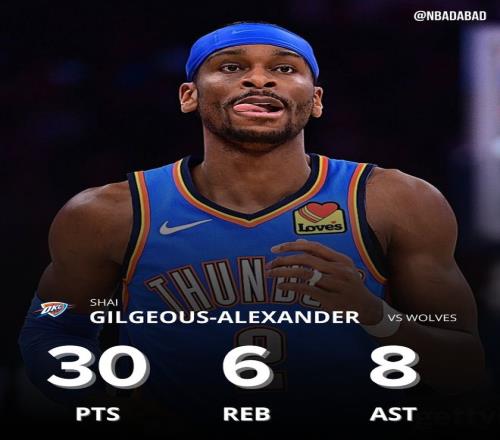 落后16分末節(jié)僅打2分鐘SGA轟30+8+6背鍋雷霆近7戰(zhàn)4負(fù)難比去年