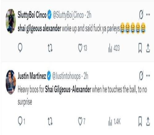 還有球迷朝著SGA噴臟話,甚至不滿SGA在末節(jié)登場(chǎng)時(shí)一直傳球,不敢出手投籃,希望他重新去掌控比賽。