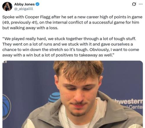賽后談到與弗拉格同場對決,克努佩爾坦言:“全明星賽時自己會與他見面,然后我倆準備在那個周末之后一起回一趟杜克大學,剛才我倆就在聊這些?!?/p>