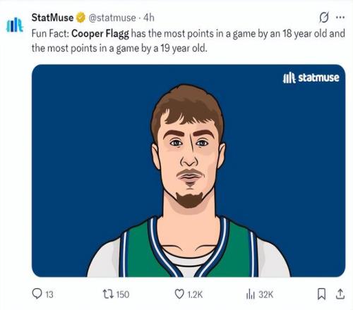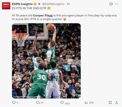 13.弗拉格本賽季兩次40+超過杜蘭特、文班亞馬等多位球星;