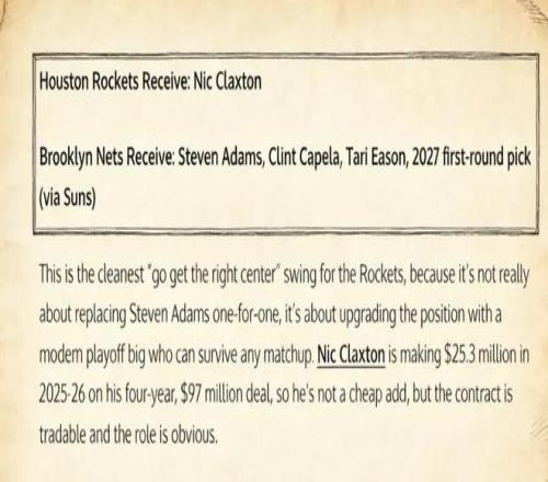 4換1!炸裂交易方案出爐,場(chǎng)均12+7神塔馳援火箭,頂替亞當(dāng)斯