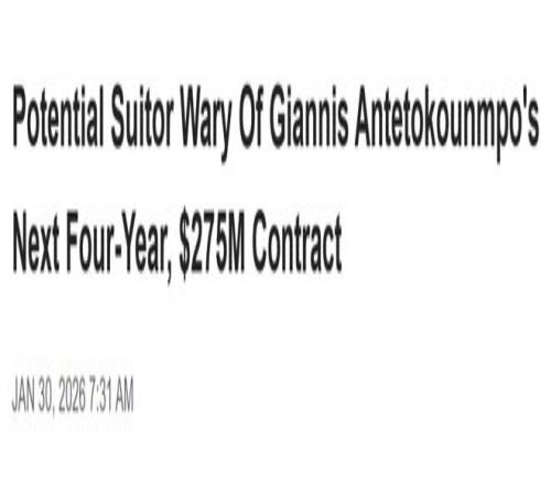 4年2.75億美元!字母哥巨額續(xù)約成交易變數(shù):各隊(duì)必須權(quán)衡利弊