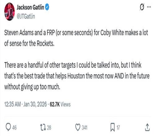 其中火箭媒體人Jackson Gatlin更是支招火箭隊(duì),可以嘗試打包賽季報(bào)銷的亞當(dāng)斯+一枚首輪簽或者數(shù)枚次輪簽嘗試追求科比懷特。