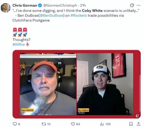 火箭隊記本-杜博斯實際上在一天之前就知悉了公牛、火箭關(guān)于懷特的交易的探索,本-杜博斯在播客節(jié)目中明確表示:因為公牛提出的交易籌碼火箭無法匹配,所以火箭交易得到懷特不太可能達成。