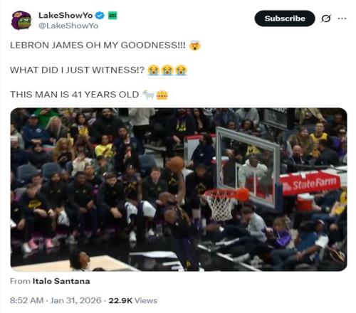 41歲詹皇空接平框暴扣!湖媒高呼OMG在場(chǎng)+25打卡還大幅降薪