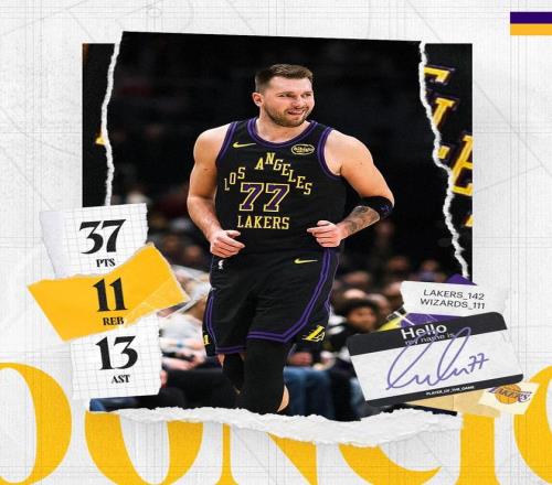 1月31日消息,1月31日結(jié)束的NBA常規(guī)賽中,湖人客場以142-111大勝奇才。本場比賽,湖人當家球星盧卡-東契奇半場砍...