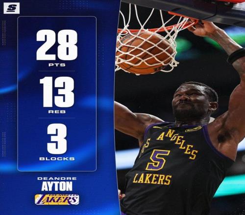 湖人隊內(nèi)線虎將艾頓,在此役迎來了暴走。艾頓出戰(zhàn)29分鐘,14投12中,罰球4中4,狂轟28分13籃板3助攻1搶斷3蓋帽的兩雙數(shù)據(jù),正負值+30全場最高。艾頓全場僅僅投丟2球,有著85.7%的極高命中率??诚铝巳珗龅诙叻值陌D,在進攻端火力全開。并且,艾頓還是此戰(zhàn)的籃板王。艾頓的5個前場籃板,也領(lǐng)跑兩隊。在防守端威懾力十足的艾頓,還是此戰(zhàn)的蓋帽王。