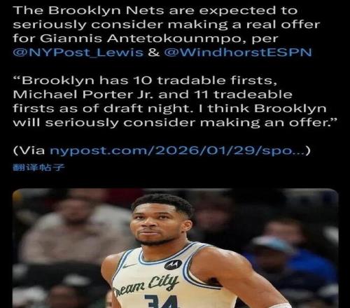 據(jù)ESPN名記 Windhorst和籃網(wǎng)隊(duì)記Lewis聯(lián)合報(bào)道,籃網(wǎng)預(yù)計(jì)將認(rèn)真考慮一波為字母哥提供一份正式報(bào)價(jià)。