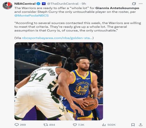 賽前根據(jù)NBC的報(bào)道,勇士會(huì)對(duì)揚(yáng)尼斯進(jìn)行豐厚的報(bào)價(jià),勇士?jī)?nèi)部只有庫(kù)里一人是非賣品。